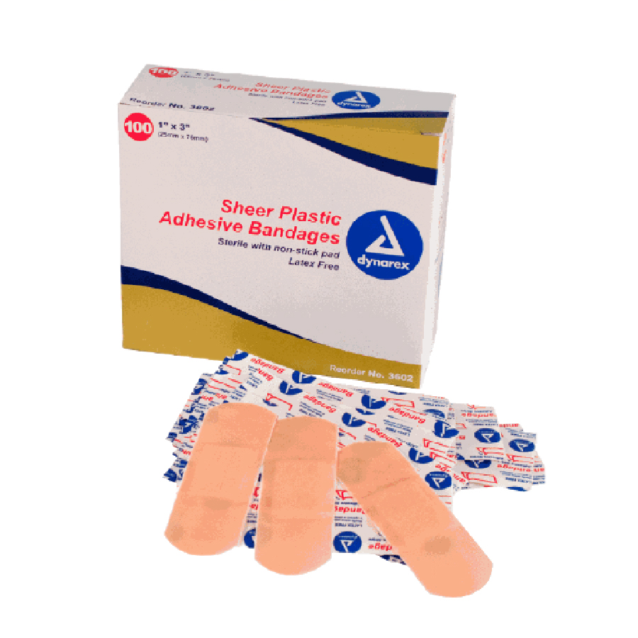 A sterile, ready to use protective dressing for minor cuts and abrasions. Manufactured of strong, sheer, ventilated plastic, coated with a long-lasting adhesive. Non-stick pad for comfort and fluid absorption. Packaged in dispenser boxes for convenient handling.