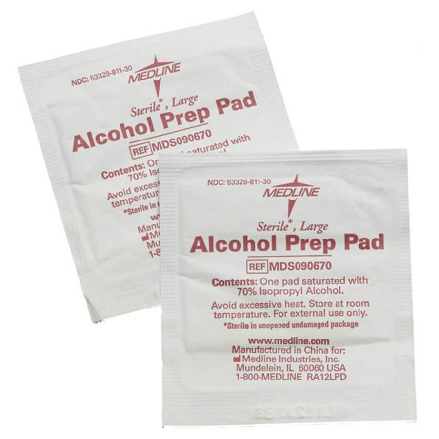 Soft, absorbent, nonwoven pads are saturated with 70% isopropyl alcohol, USP