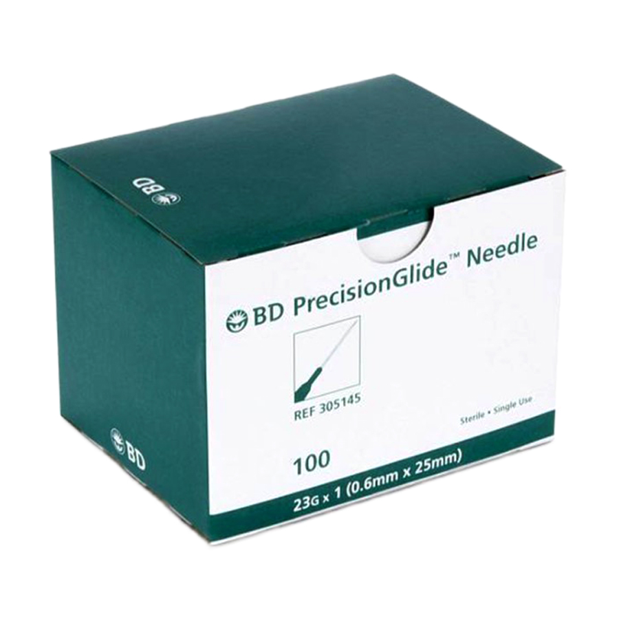 BD PrecisionGlide Hypodermic Needle Only: 23 gauge x 1 inch length (25mm).