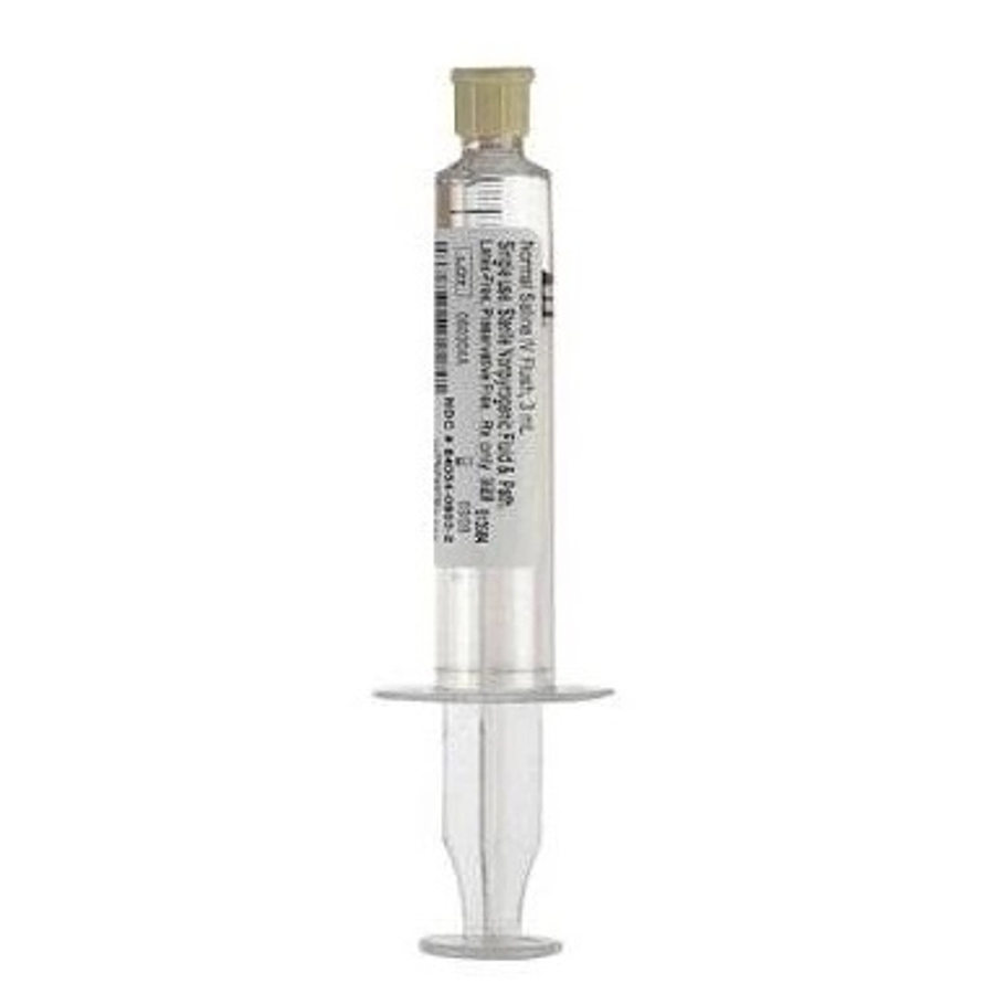 100 x 10cc pre-filled syringes of Sodium Chloride solution (NaCl) 0.9%. Sodium chloride solution intended for intravenous injection. Nonpyrogenic parenteral solution of electrolyte replenishers in water. Intended as single-dose injection; unused portions should be discarded.