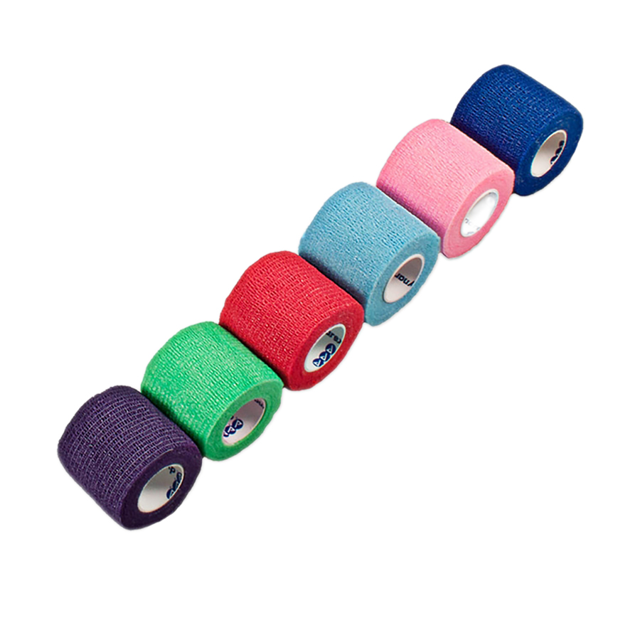 Flexible, self-adhering bandages fasten securely without sticking to hair, skin, or clothing.