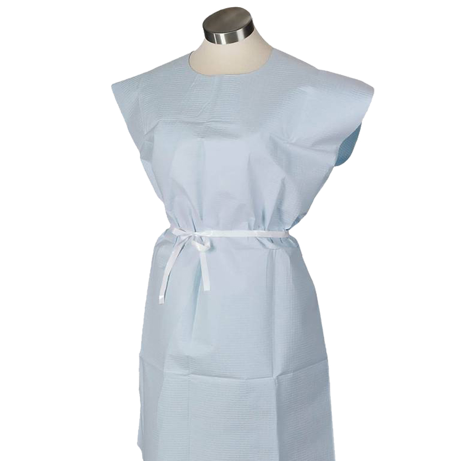 Modest blue patient paper 30 x 42 inch exam gowns versatile front/back open design.