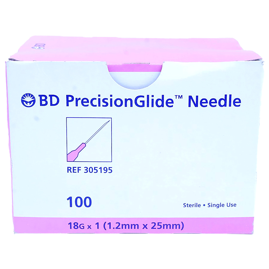 BD PrecisionGlide without safety 18 gauge 1″ hypodermic needle with a standard Luer hub connection type.