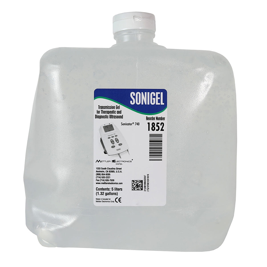 Sonigel multi-purpose 5 liter cubitainer ultrasound gel, a couplant for therapeutic ultrasound and muscle stimulation. Now you can get Sonigel as a clear, colorless, nearly bubble-free gel or as a soothing lotion with Aloe Vera. All Sonigel products are alcohol and salt free as well as non-corrosive. The gel is convenient for either therapeutic or diagnostic ultrasound procedures. The lotion is greaseless and can also be used for massage therapy.