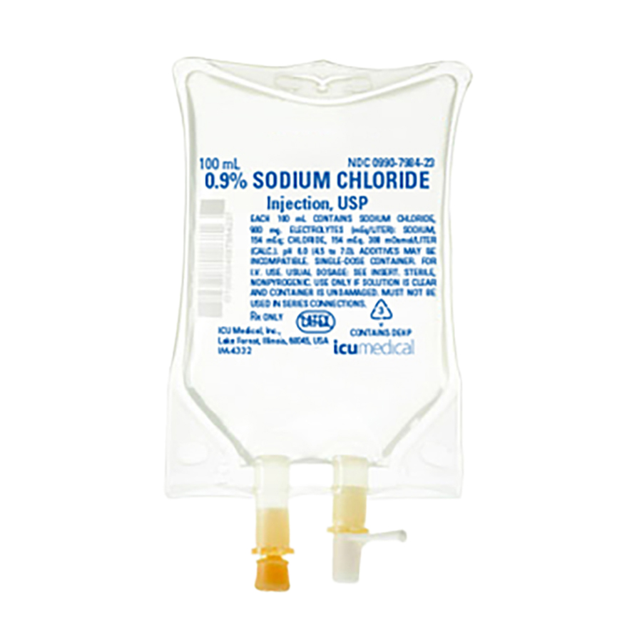 48 x 100mL bags of Sodium Chloride solution (NaCl) 0.9%. Sodium chloride solution intended for intravenous injection. Nonpyrogenic parenteral solution of electrolyte replenishers in water.