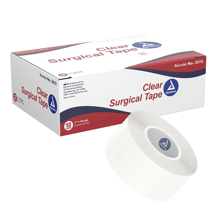Dynarex transparent 1 inch X 10 yard nonsterile porous medical tape stretches and conforms to body contours. Ideal for IV tubing and catheter tape downs. Superior adhesion, highly porous