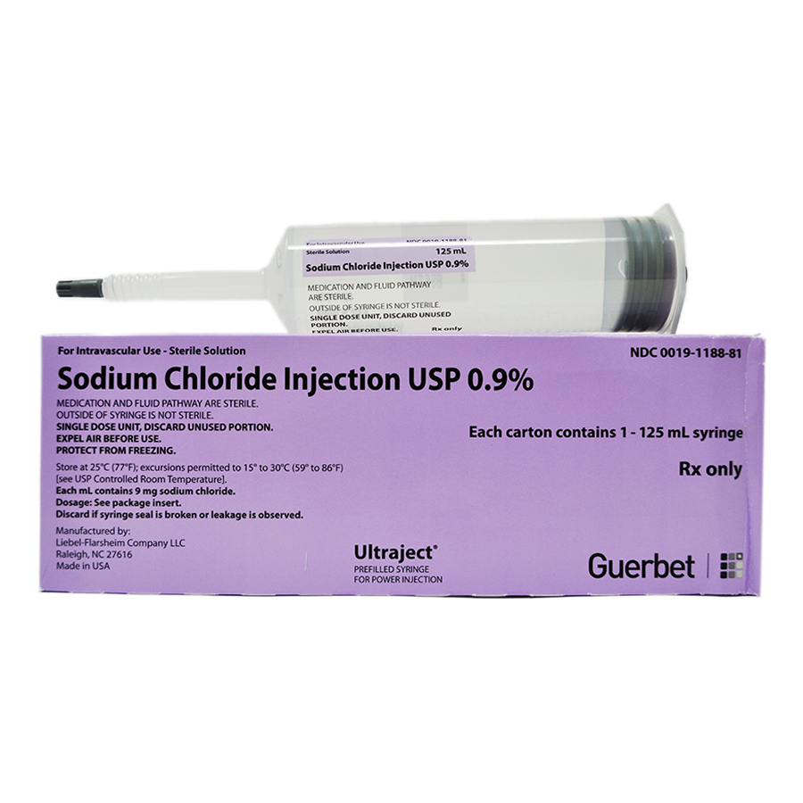 20 x 125mL pre-filled syringes of Sodium Chloride solution (NaCl) 0.9%. Sodium chloride solution intended for intravenous injection. Nonpyrogenic parenteral solution of electrolyte replenishers in water. Intended as single-dose injection; unused portions should be discarded.