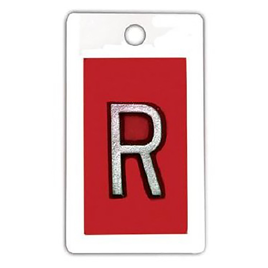 Identifier style marker featuring a high-density lead letter embedded in an injection molded, high-impact white polystyrene casing with no initials.