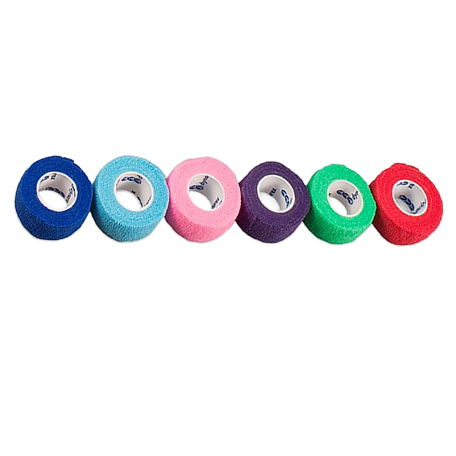Flexible, self-adhering bandages fasten securely without sticking to hair, skin, or clothing.
