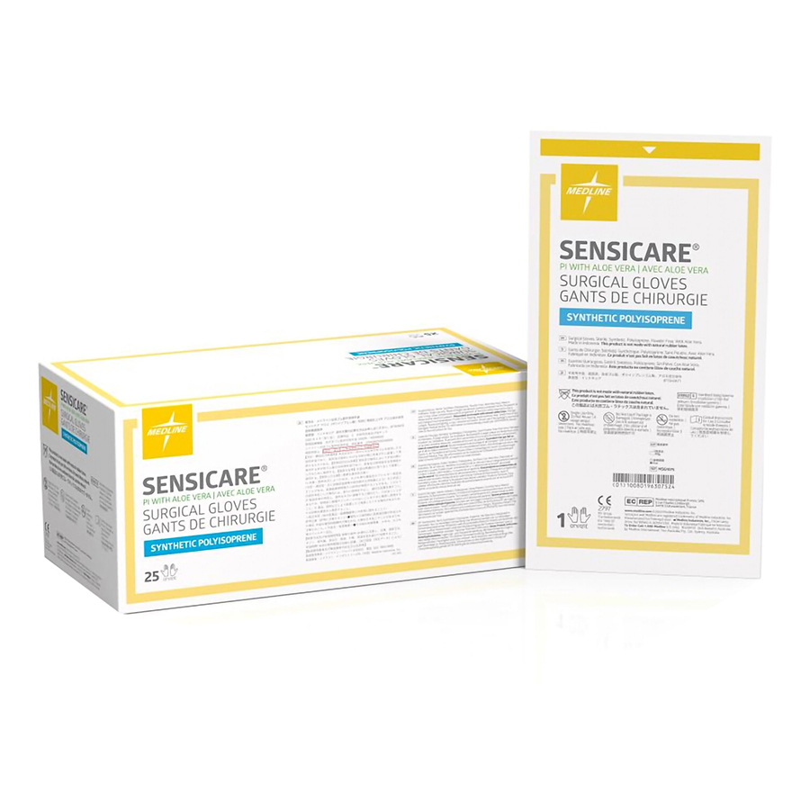 Sensicare is coated with 100% pure aloe vera to help soothe and moisturize dry, irritated skin caused by frequent hand washing and glove-wearing.