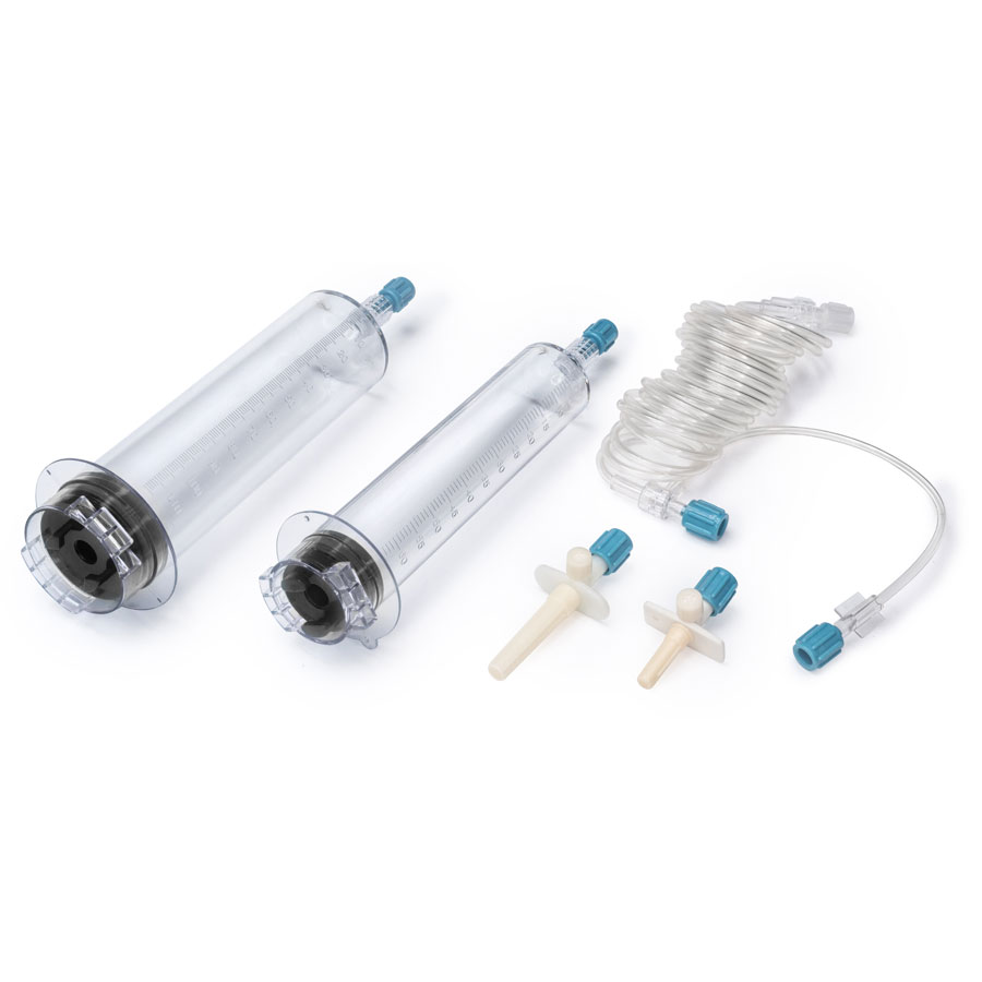 This kit works seamlessly with specialized injectors in MRI and CT contrast delivery. Its precision-designed components support smooth media transfer through specialized tubing connections.